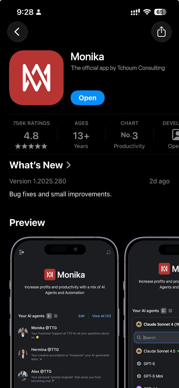 Start and conversation by chat, text message or phone call with Monika as if you were interviewing your new employee, and she will take care of the rest.
